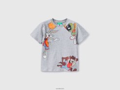 lysegrå Benetton barn kortermet space jam t-skjorte 20TRB1778