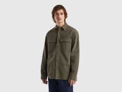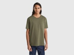 militærgrønt Benetton menn T-skjorte i 100 % bomull med lomme 20TRB4487