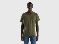 militærgrønt Benetton menn T-skjorte med v-hals i 100 % bomull 20TRB4458