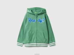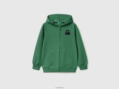 mørk grønn Benetton barn hettegenser med glidelås og broderi 20TRB1828