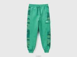 mørk grønn Benetton barn hettegenser med kamuflasjeermer 20TRB1837
