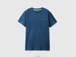 mørke blå Benetton barn t-skjorte i linblanding med lomme 20TRB1731