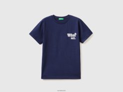 mørke blå Benetton barn t-skjorte i ren bomull med trykk 20TRB1686