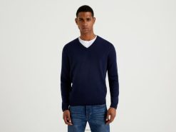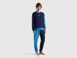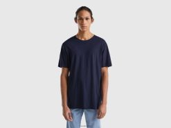 mørke blå Benetton menn mørkeblå t-skjorte i slub bomull 20TRB1280