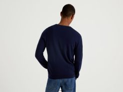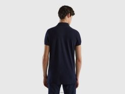mørke blå Benetton menn mørkeblå t-skjorte i slub bomull 20TRB1280