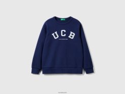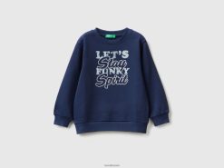 mørke blå Benetton barn genser med rund hals og trykk 20TRB2240