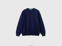 mørke blå Benetton barn genser med rund hals og trykk 20TRB5123