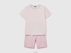 pastell rosa Benetton barn kort pyjamas i lett bomull 20TRB2779