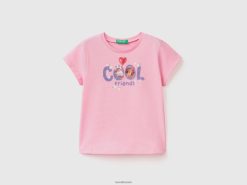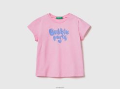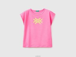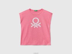 rosa Benetton barn t-skjorte med glitrende logo i økologisk bomull 20TRB2502