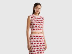 rosa Benetton kvinner t-skjorte med båthals i 100 % bomull 20TRB377