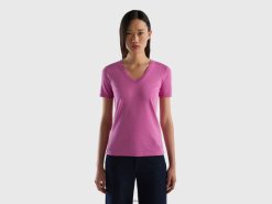 rosa Benetton kvinner t-skjorte i ren bomull med v-hals 20TRB300