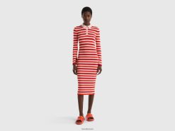 rød Benetton kvinner stripet t-skjorte med slagord 20TRB3824