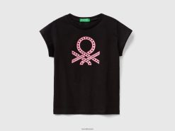 svart Benetton barn T-skjorte i 100 % økologisk bomull med logo 20TRB1735