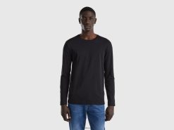 svart Benetton menn langermet t-skjorte i ren bomull 20TRB1304