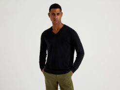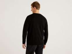 svart Benetton menn slim fit t-skjorte i stretchbomull 20TRB1277